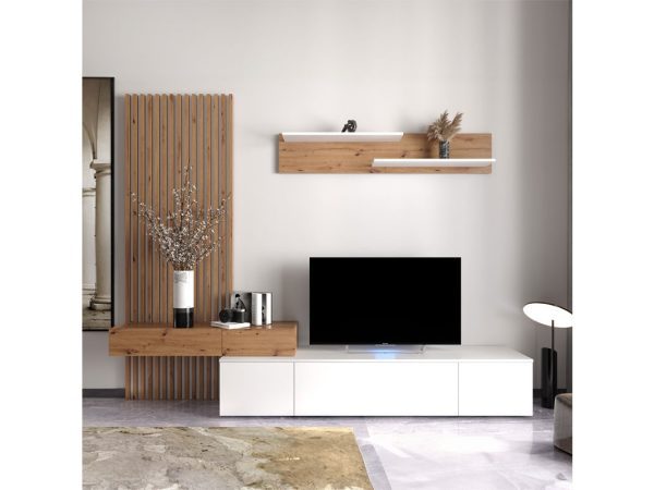 Σύνθετο Litende 192-000036 Σύνθετο σαλονιού Litende pakoworld sonoma-λευκό μελαμίνης 210x42x199.5εκ Είσαι λάτρης του κλασικού; Και ψάχνεις ένα ευφάνταστο έπιπλο τηλεόρασης