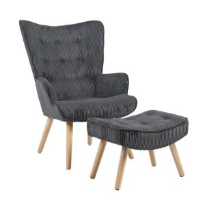 ALMA Πολυθρόνα – Μπερζέρα με Σκαμπό – Υποπόδιο Φυσικό Ύφασμα Κοτλέ Γκρι, K/D
