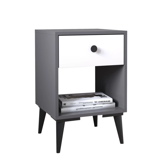 Κομοδίνο ArteLibre AMARI Ανθρακί/Λευκό Μοριοσανίδα 43x43x67.5cm