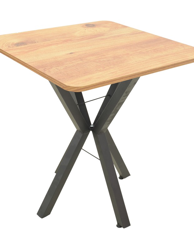 Τραπέζι Arenya pakoworld φυσική απόχρωση με μαύρα μεταλλικά πόδια 70x70x72εκ