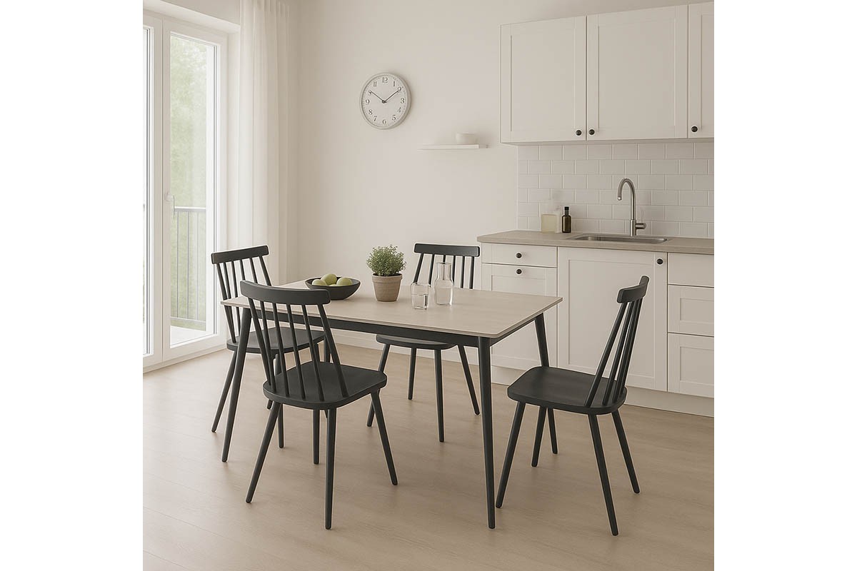 Τραπεζαρία Aurora I-Gustas pakoworld σετ 5τεμ λευκό μαρμάρου-μαύρο 120x80x76εκ