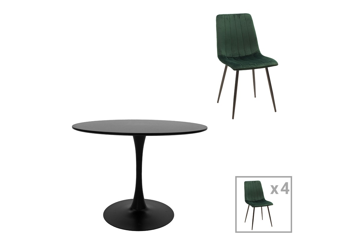 Τραπεζαρία Balou-Noor pakoworld σετ 5τεμ MDF μαύρο-κυπαρισσι Φ100×73εκ