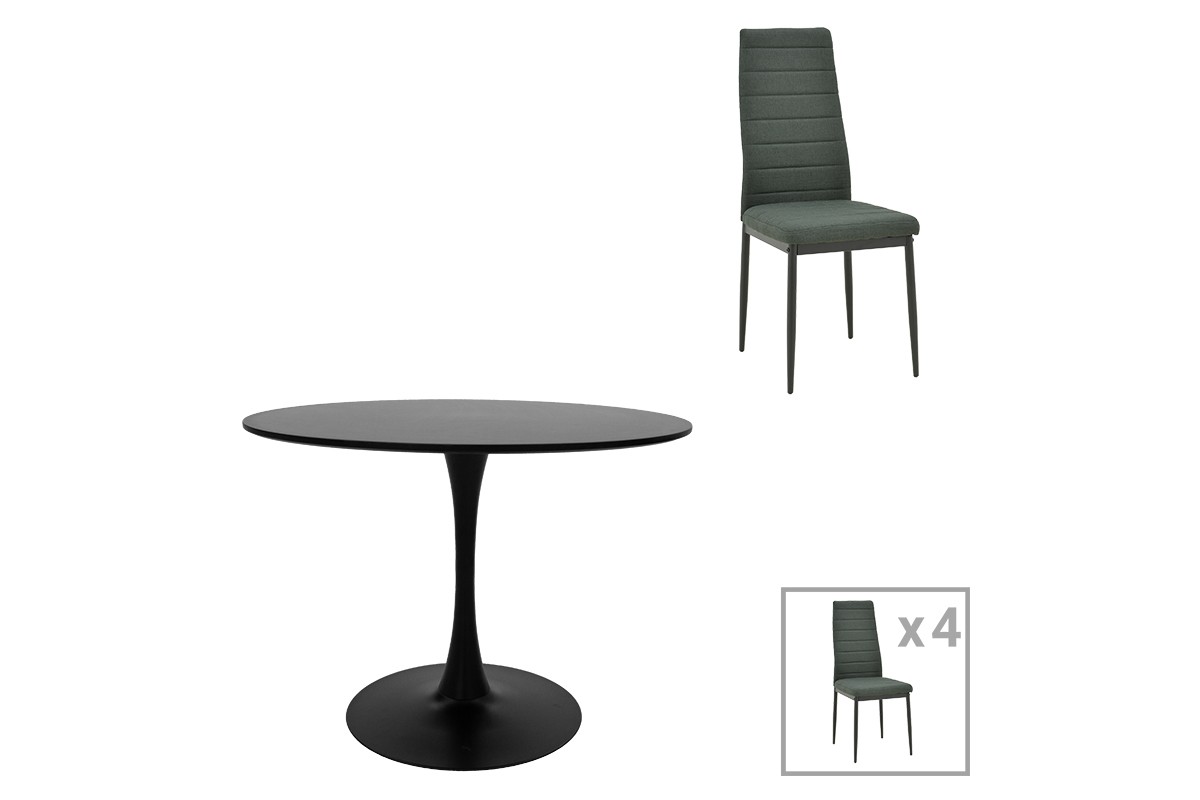 Τραπεζαρία Balou-Parker pakoworld σετ 5τεμ μαύρο-ύφασμα ανθρακί Φ120×73εκ