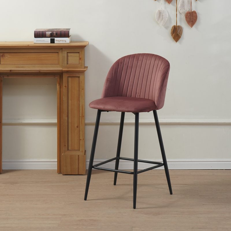 Σκαμπό μπαρ Barow pakoworld βελούδο σε σάπιο μήλο απόχρωση με μαύρα μεταλλικά πόδια 53×46.5×96.5