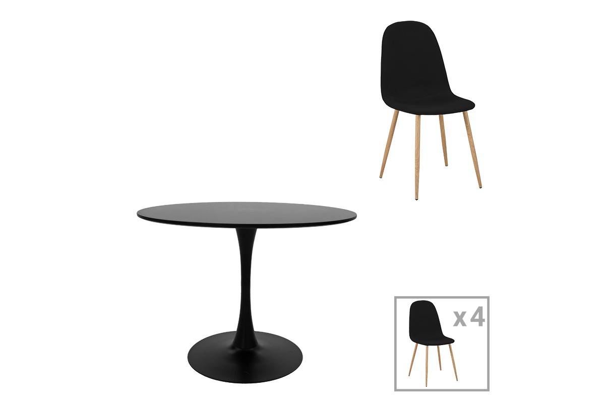 Τραπεζαρία Bella-Balou pakoworld σετ 5τεμ MDF μαύρο-ύφασμα μαύρο Φ120×73εκ