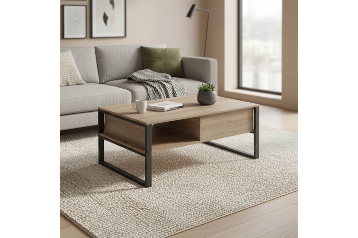 Ολοκληρώστε την διακόσμηση του σαλονιού σας με αυτό το πρακτικό και στυλάτο τραπεζάκι Bendon, που συνδυάζει άψογα τη λειτουργικότητα με το σύγχρονο design. Η ζεστή απόχρωση του ξύλου σε συνδυασμό με τα γεωμετρικά μεταλλικά πόδια σε μαύρο χρώμα, δημιουργούν ένα εντυπωσιακό βιομηχανικό στυλ που θα αναβαθμίσει κάθε χώρο.