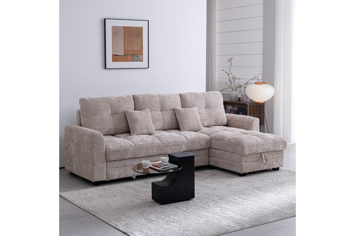 Γωνιακός αναστρέψιμος καναπές κρεβάτι Comfie pakoworld με αποθηκευτικό χώρο μπεζ ύφασμα 267x159x97εκ