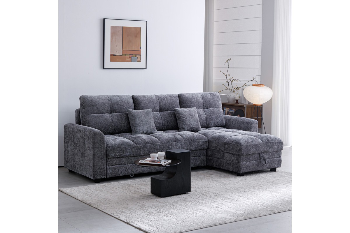 Γωνιακός αναστρέψιμος καναπές κρεβάτι Comfie pakoworld με αποθηκευτικό χώρο ανθρακί ύφασμα 267x159x97εκ