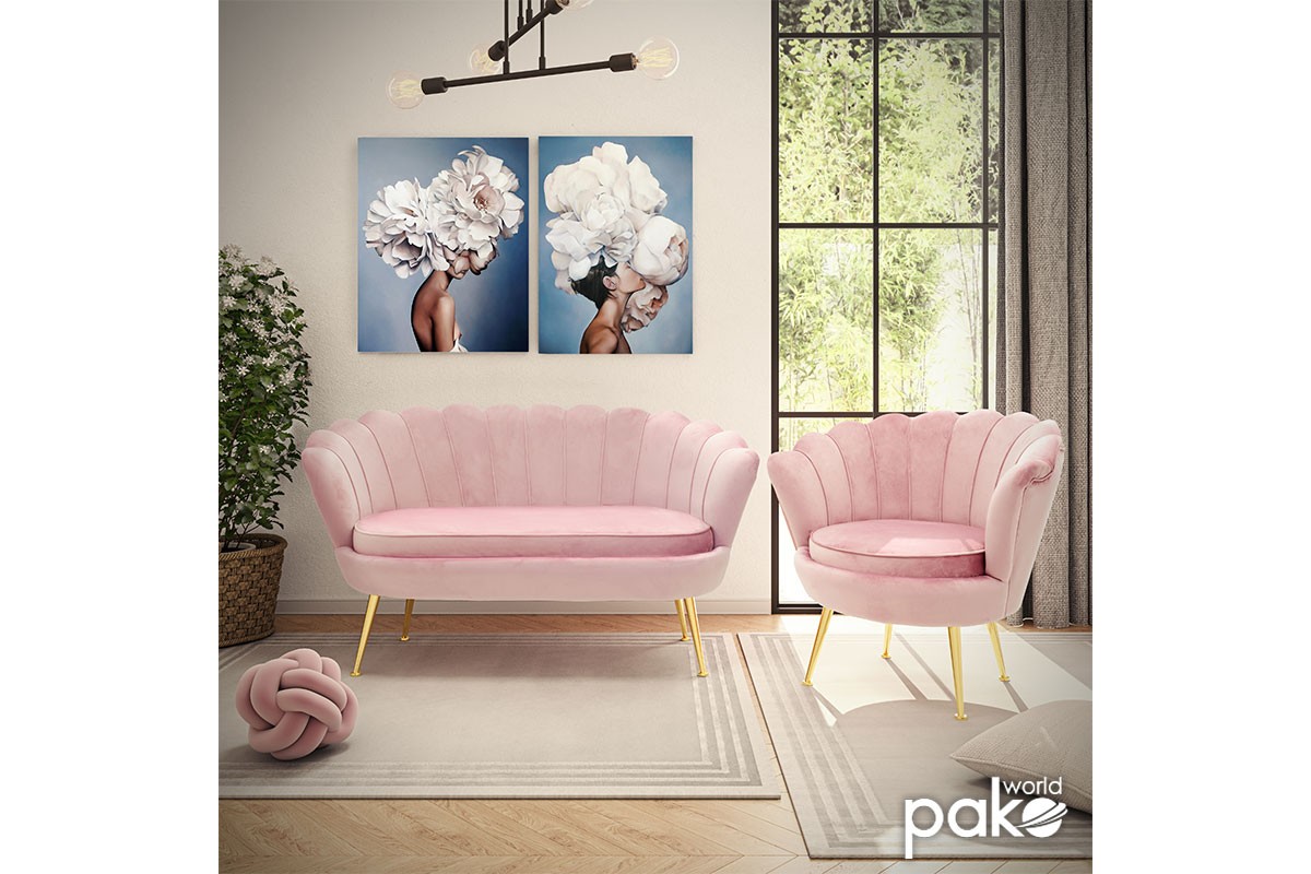 Καναπές 2θέσιος Daimon pakoworld βελούδο ροζ 134x70x77εκ