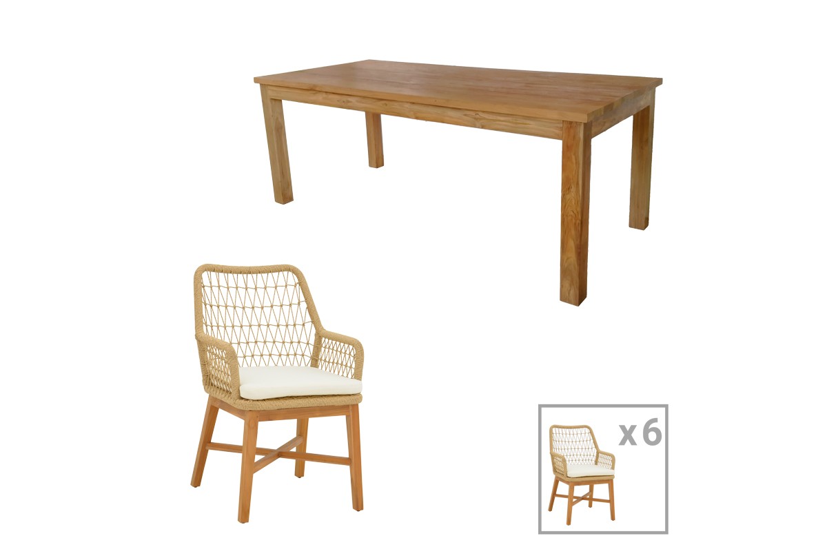 Τραπεζαρία 7τεμ Elaiza-Wooly pakoworld teak ξύλο σε φυσική-μπεζ απόχρωση 220x90x75εκ