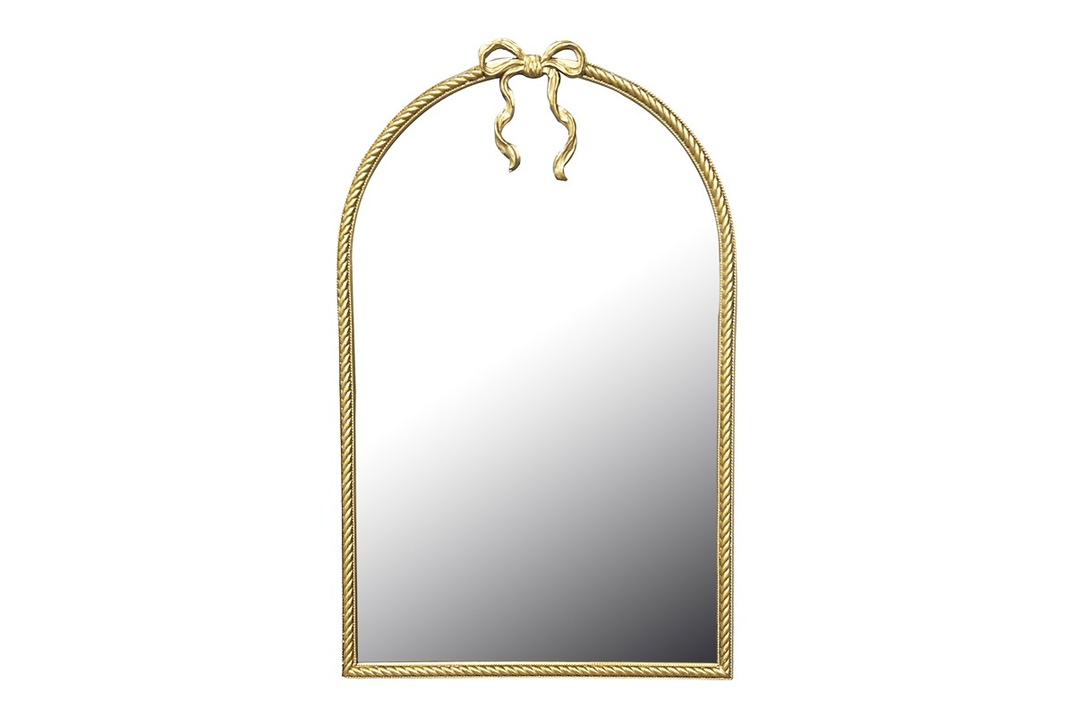 Φέρτε έναν αέρα ρομαντικής κομψότητας και αρχοντιάς στον χώρο σας με αυτόν τον υπέροχο καθρέφτη τοίχου σε σχήμα αψίδας. Το περίτεχνο χρυσό πλαίσιο και ο διακριτικός φιόγκος στην κορυφή, προσδίδουν μια διαχρονική φινέτσα και έναν αριστοκρατικό τόνο.