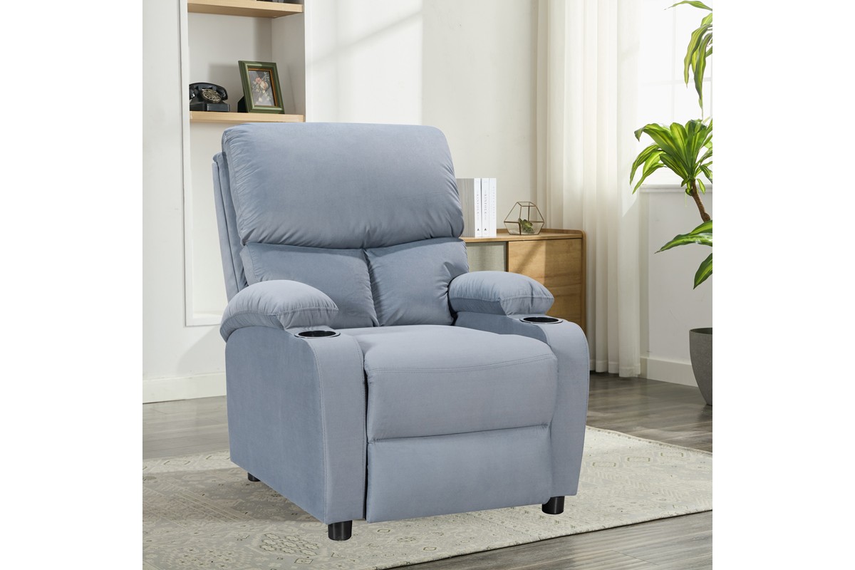 Πολυθρόνα relax με ποτηροθήκη Gartia pakoworld βελούδο σε γκρι απόχρωση 79x94x102εκ