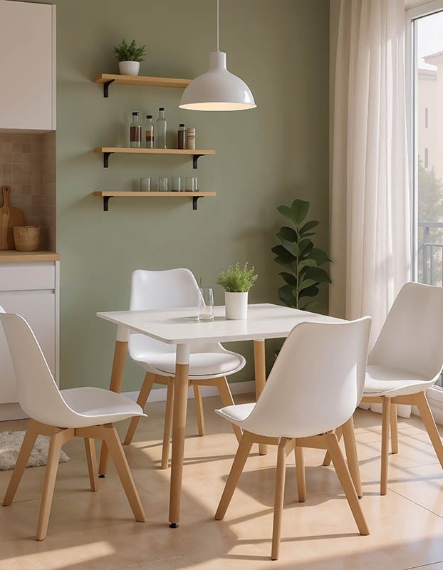 Τραπεζαρία με Καρέκλες Gaston λευκό και Τραπέζι Natali λευκό 80x80x76εκ Σετ 5τεμ