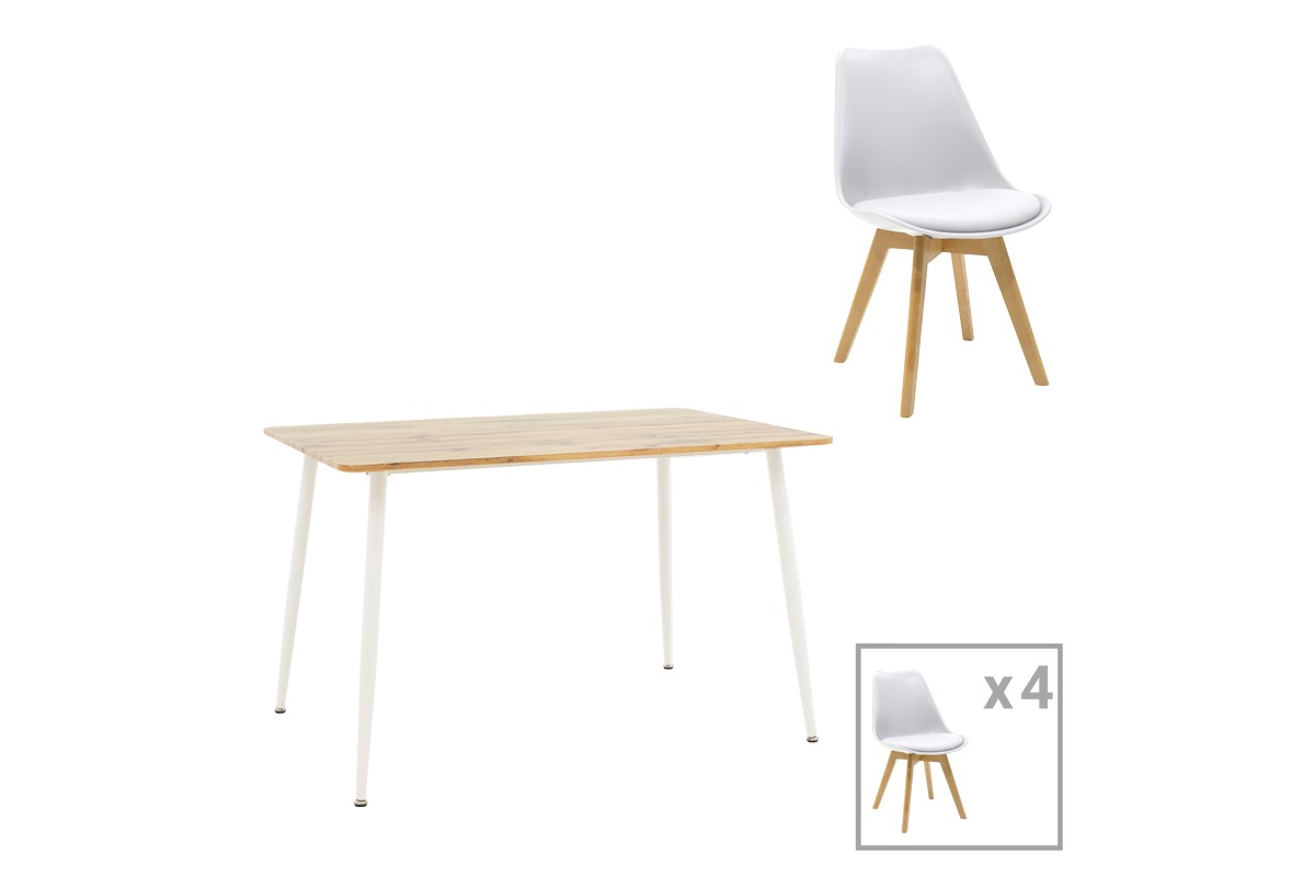 Τραπεζαρία Gaston-Cuba pakoworld σετ 5τεμ pp-mdf σε λευκή-sonoma απόχρωση120x80x75εκ