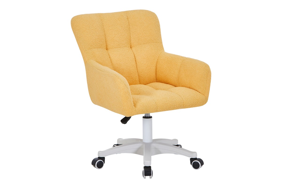 Καρέκλα γραφείου εργασίας Givole pakoworld σε κίτρινο μπουκλέ ύφασμα 55x55x75-84εκ