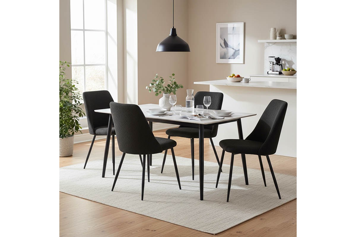 Τραπεζαρία Gustas-Giselle pakoworld σετ 5τμχ λευκό μαρμάρου-μπουκλέ μαύρο 120x80x76εκ