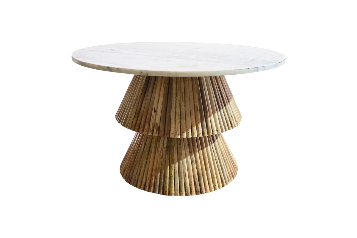 Τραπέζι σαλονιού Havai pakoworld μασίφ ξύλο mango σε φυσική απόχρωση κ λευκή επιφάνεια μαρμάρου Φ80×45εκ