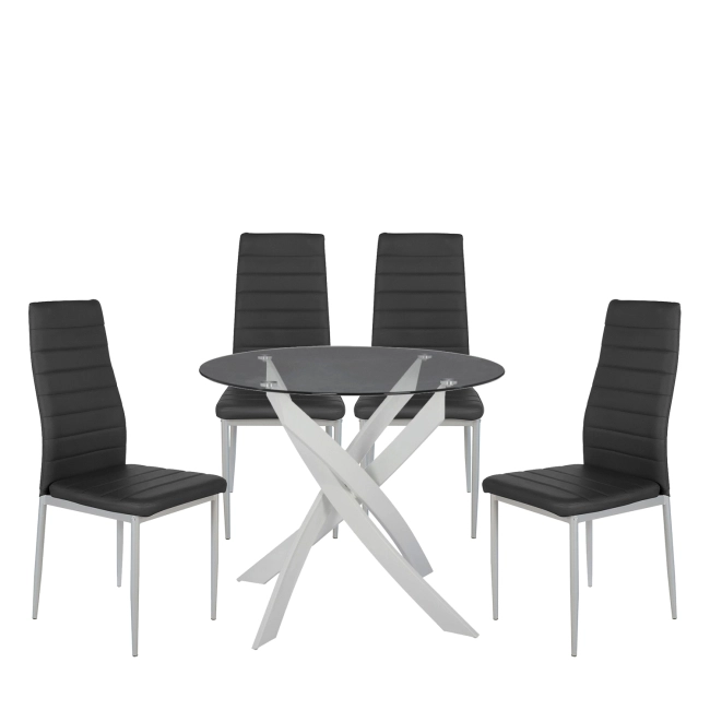 Σετ Τραπεζαρία (4+1) ArteLibre HEKLA Λευκό/Γκρι/Μαύρο Μέταλλο/PVC/Γυαλί 90x90x74cm
