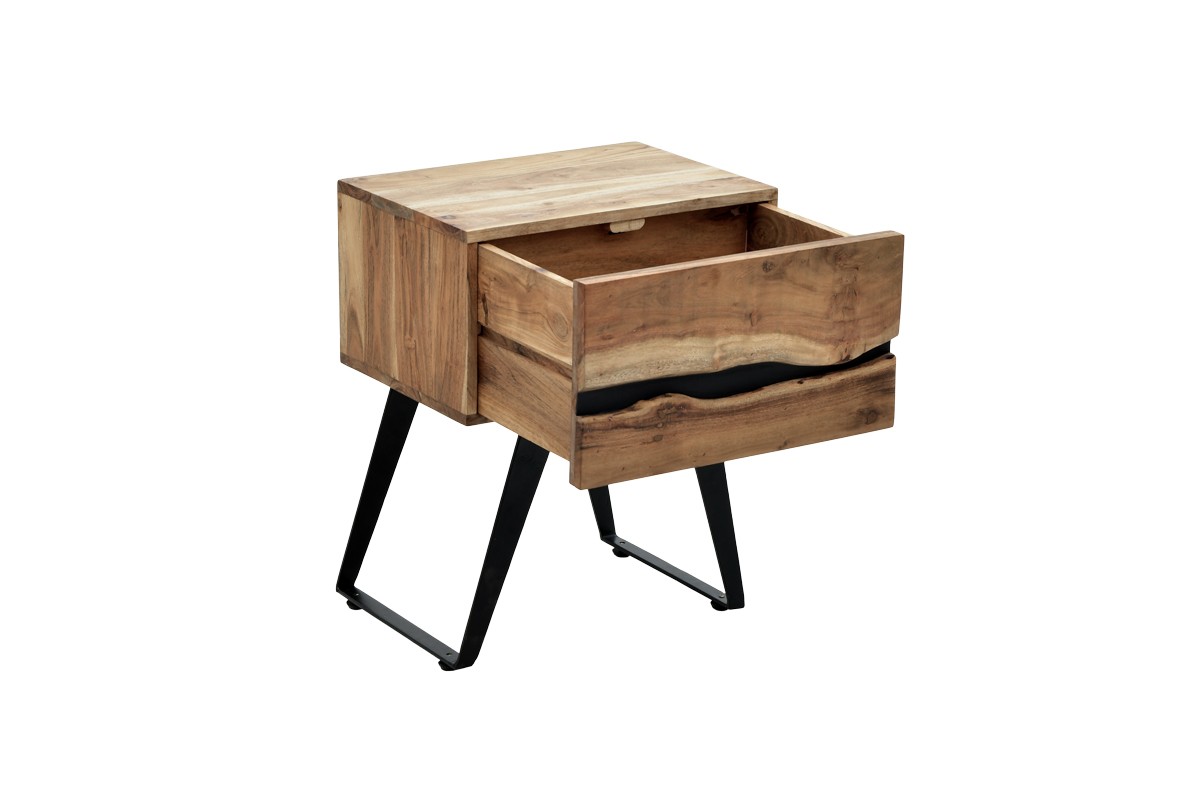 Κομοδίνο Imena pakoworld μασίφ ξύλο Acacia σε φυσικό απόχρωση με μαύρα μεταλλικά πόδια 45x35x56εκ