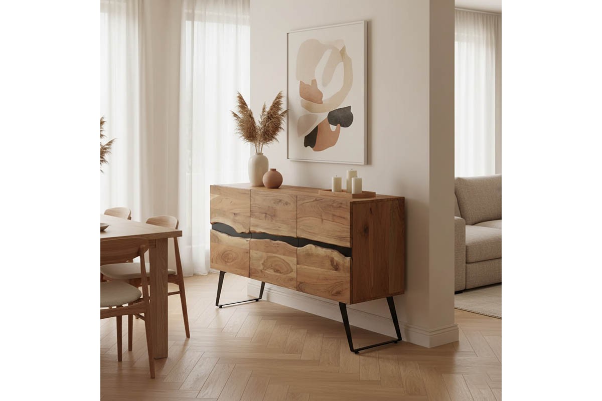 Μπουφές Imena pakoworld μασίφ ξύλο Acacia σε φυσική απόχρωση με μαύρα μεταλλικά πόδια 148×43.5×86εκ