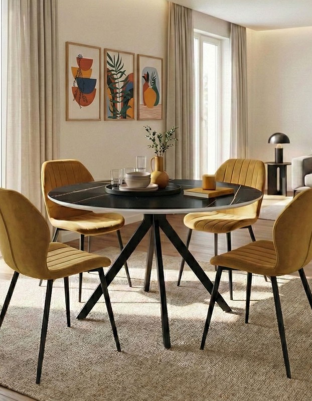 Τραπεζαρία με Καρέκλες Jelour Κίτρινο και Τραπέζι Orbital Μαύρο Φ120×76 Σετ 5τεμ
