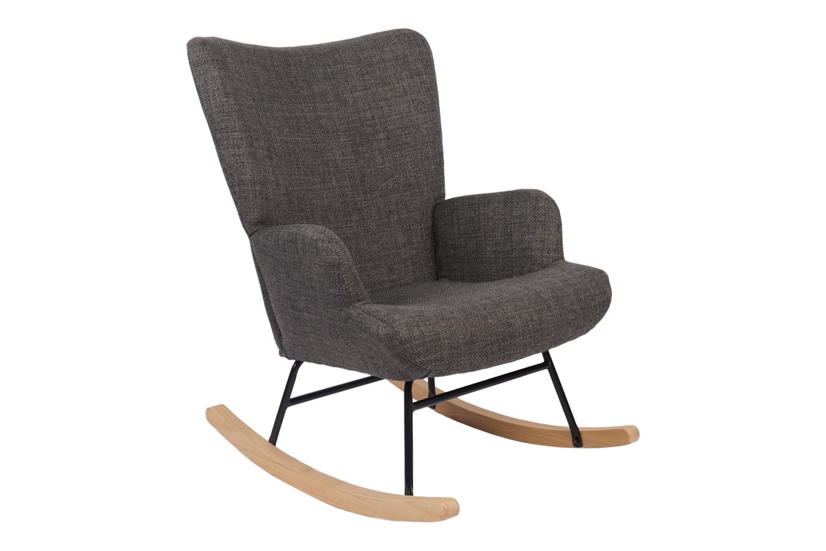Κουνιστή πολυθρόνα Jianna pakoworld ανθρακί ύφασμα με πόδι σε φυσική απόχρωση 79x64x89εκ