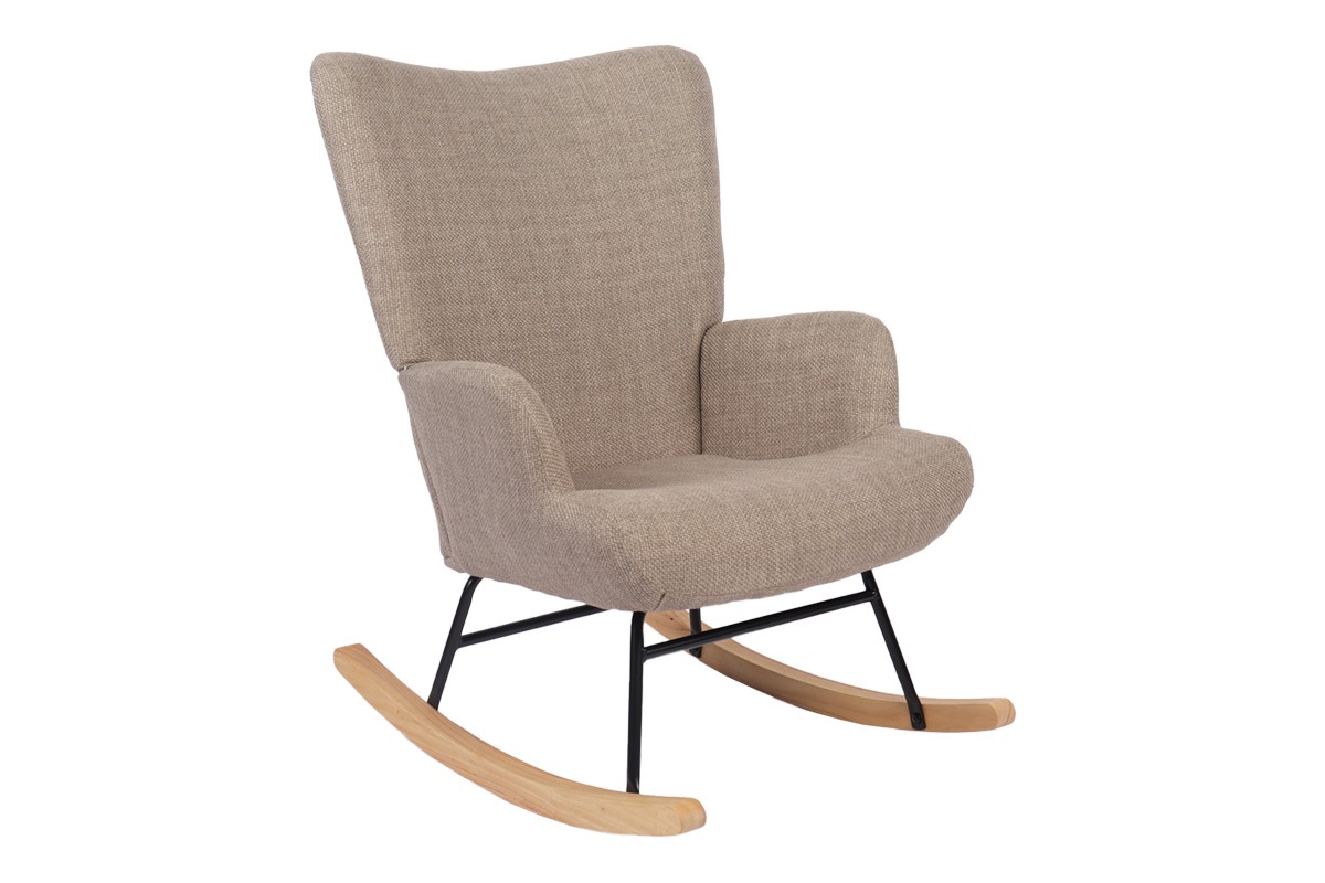 Κουνιστή πολυθρόνα Jianna pakoworld γκρι-μπεζ ύφασμα με πόδι σε φυσική απόχρωση 79x64x89εκ