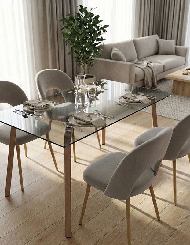 Τραπεζαρία με Καρέκλες Jonah Γκρι και Τραπέζι Titta γυαλί 120x70x75εκ Σετ 5τεμ