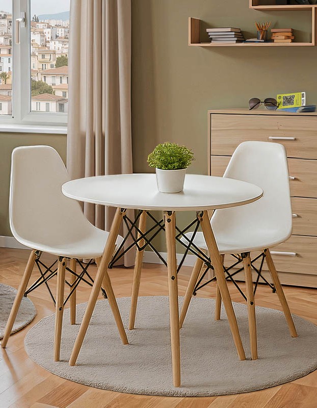 Τραπεζαρία με Καρέκλες Julita λευκό και Τραπέζι Julita λευκό Φ80×73εκ Σετ 3τεμ