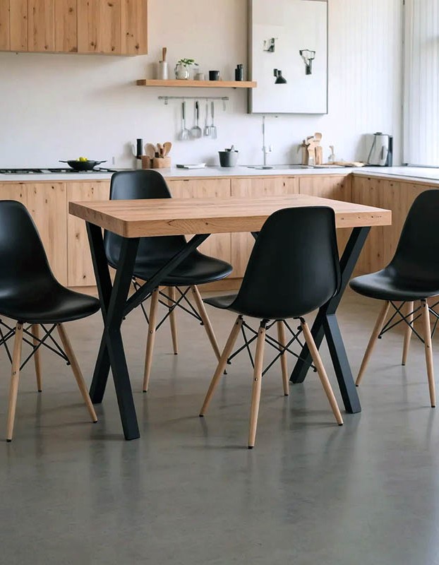 Στήριξη σε 4 ενισχυμένα ξύλινα πόδια οξιάς, ενοποιημένα με μαύρους μεταλλικούς βραχίονες, εξαιρετικής ποιότητας και αντοχής στο βάρος όσο και στο χρόνο.