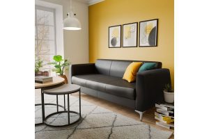 Καναπές 3θέσιος Dermis pakoworld inox-τεχνόδερμα μαύρο 188x75x75εκ