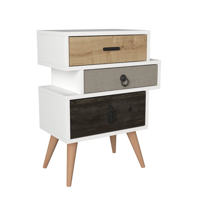 Κομοδίνο ArteLibre KIMOLOS Λευκό/Φυσικό/Καφέ 52x30x68cm