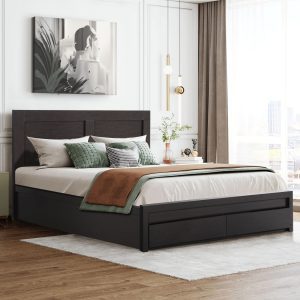 Είναι πολύ σημαντικό να ξεκινάμε την ημέρα με υπέροχη διάθεση. Και αυτό το πετυχαίνουμε ξυπνώντας σε ένα φανταστικό κρεβάτι. Το επιβλητικό κρεβάτι FB9399.11 σε διάσταση για διπλό στρώμα 160×200 εκ, είναι μια άριστης ποιότητας, κλασική και ασφαλής επιλογή που θα ταιριάξει σε κάθε υπνοδωμάτιο. Το χαρακτηριστικό του είναι ότι πατάει απευθείας στο δάπεδο και εκμεταλλεύεται τον χώρο κάτω από τις τάβλες του σομιέ με 2 εύχρηστα συρτάρια που βγαίνουν από την πλευρά του «ποδαρικού» (η επιφάνεια απέναντι από το κεφαλάρι). Όλες οι γωνίες είναι τετραγωνισμένες χωρίς καμία καμπύλη, ενώ o WENGE χρωματισμός είναι ευχάριστος και μπορεί να συνδυαστεί με πληθώρα διακοσμητικών μοτίβων στον χώρο σας.