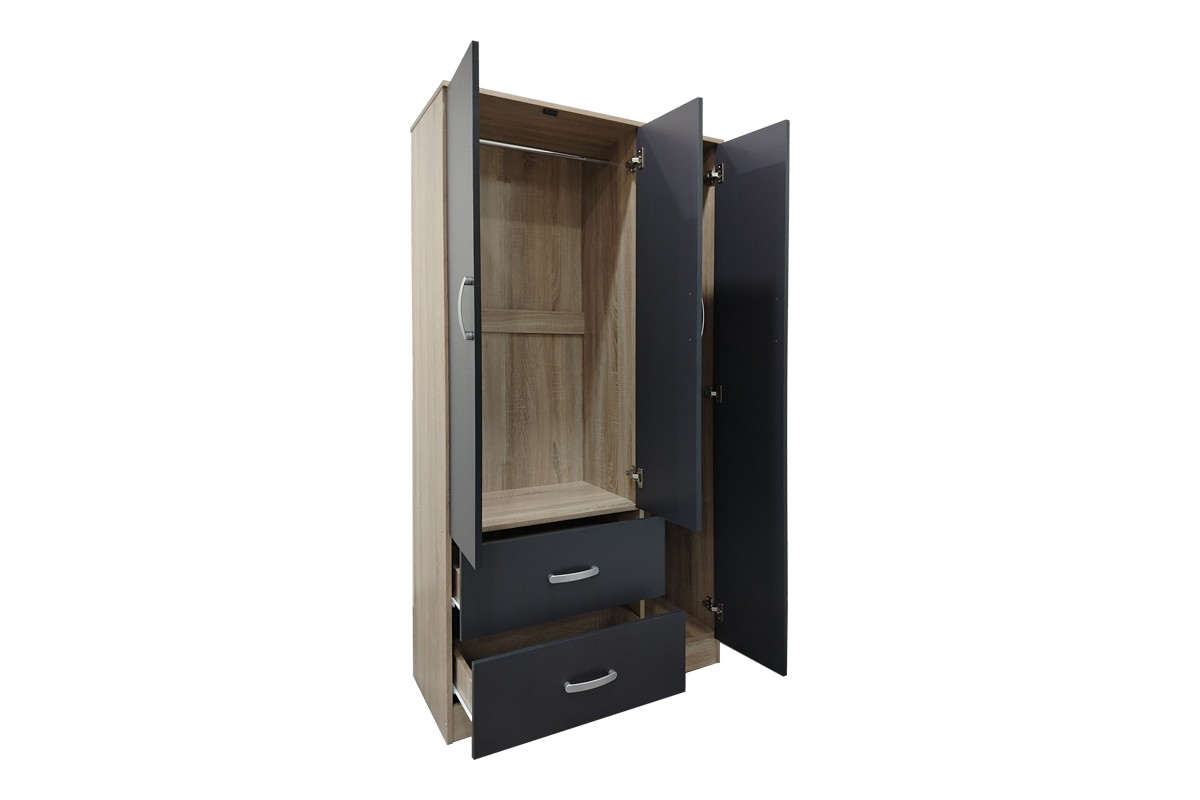 Ντουλάπα τρίφυλλη με 2 συρτάρια Lego pakoworld σε sonoma-ανθρακί απόχρωση 90x42x180εκ