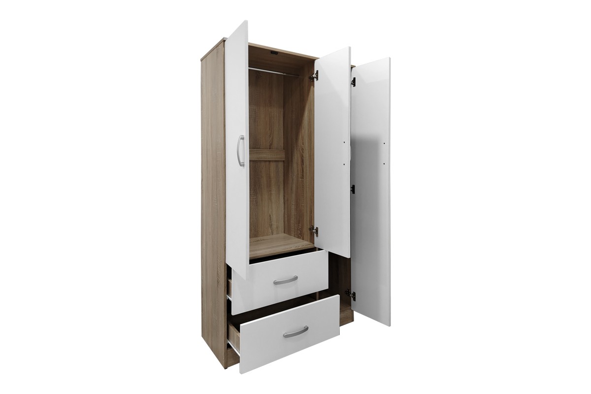 Ντουλάπα τρίφυλλη με 2 συρτάρια Lego pakoworld σε sonoma-λευκή απόχρωση 90x42x180εκ
