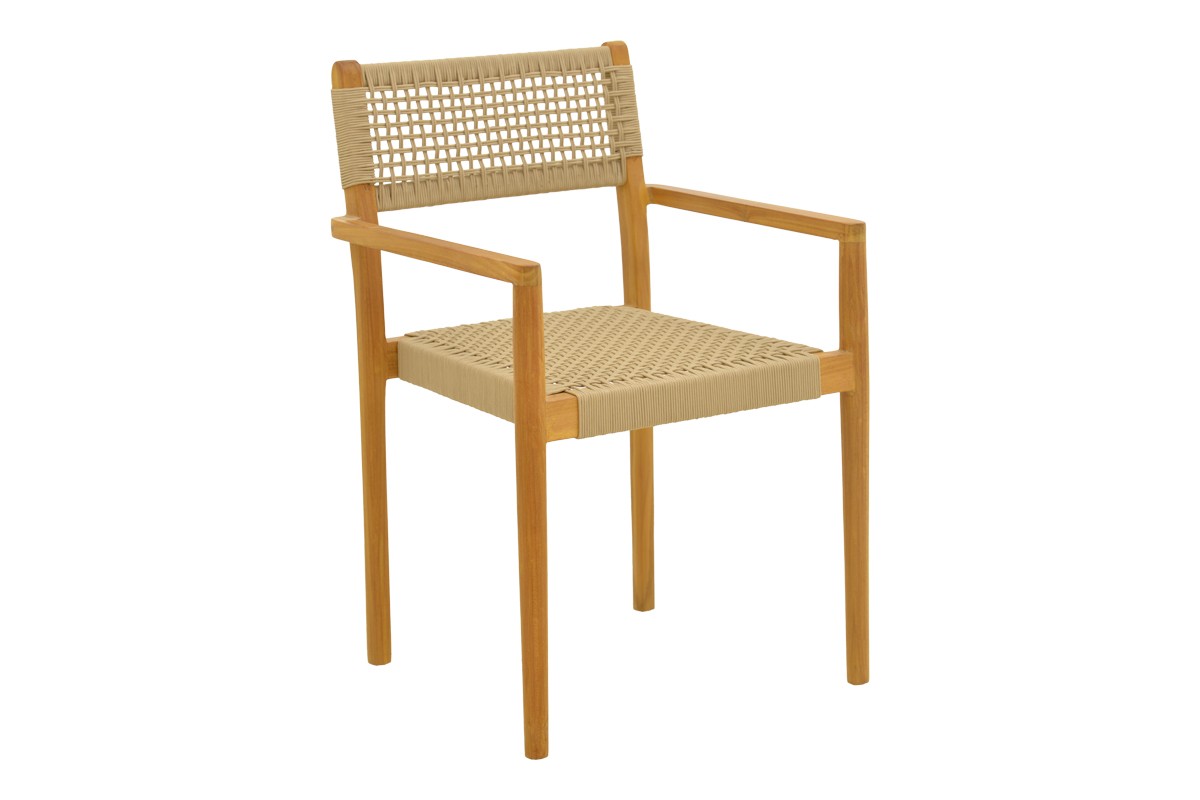 Πολυθρόνα Lengan pakoworld σκελετός teak ξύλο σε φυσική απόχρωση-μπεζ σχοινί 54x52x80εκ