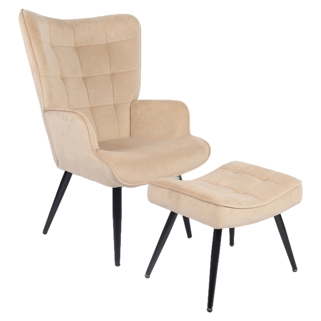 Πολυθρόνα Μπερζέρα Με Υποπόδιο ArteLibre LENNOX Μπεζ Βελούδο/Ξύλο 96x68x73cm