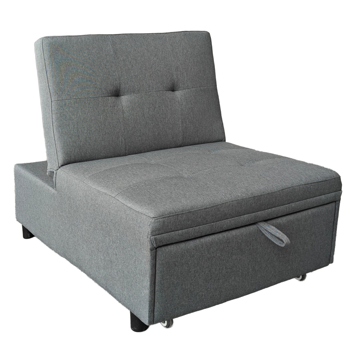 Η πολυθρόνα LIBRE ήρθε και απογειώνει την πρακτικότητα. Έχει χαμηλά πόδια, δεν διαθέτει μπράτσα και είναι επενδυμένη με ποιοτικό ύφασμα σε ΓΚΡΙ χρώμα. Αυτό που την κάνει όμως να ξεχωρίζει είναι ότι μετατρέπεται σε κρεβάτι πολύ εύκολα τραβώντας προς τα έξω με έναν ιμάντα το αναδιπλούμενο κρεβάτι που βρίσκεται κάτω από το κάθισμα ενώ και η πλάτη «πέφτει» ελαφρώς προς τα πίσω δημιουργώντας ένα άνετο μονό κρεβάτι.