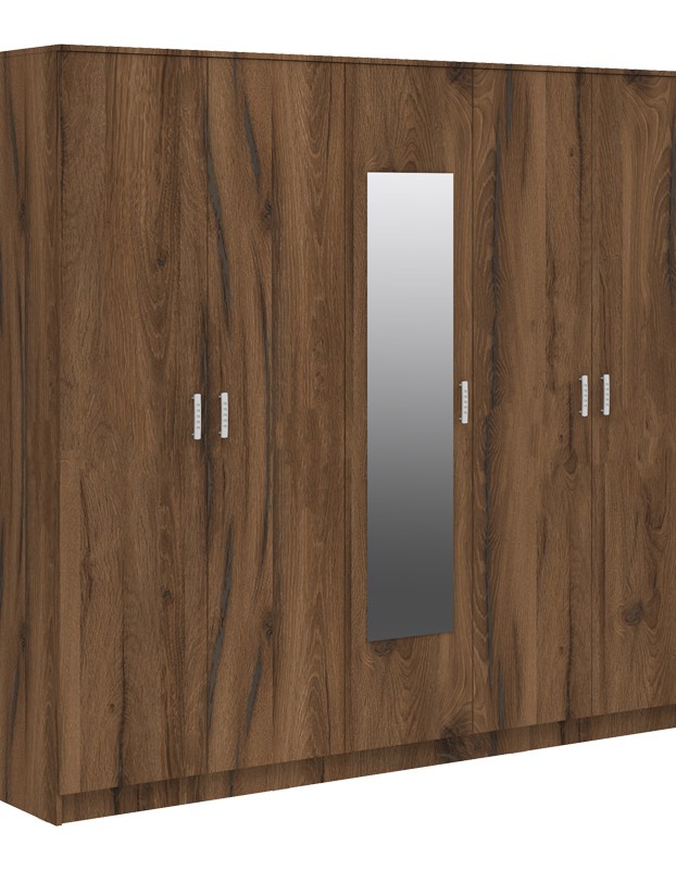 Ντουλάπα πεντάφυλλη με καθρέφτη Luna pakoworld καρυδί-oak 220x52x200εκ