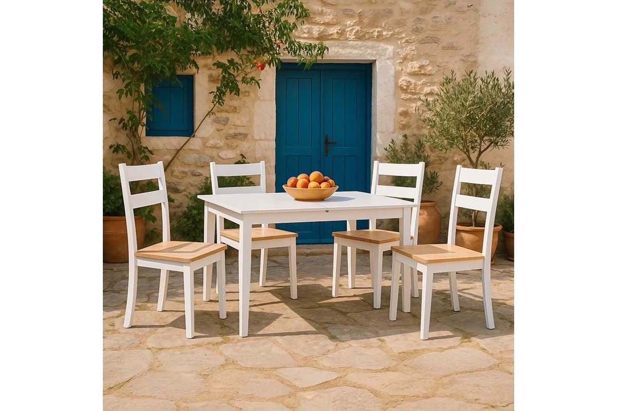 Tραπεζαρία επεκτεινόμενη Mabor-York pakoworld σετ 5τεμ ξύλο σε λευκή απόχρωση 120-150x80x73,8εκ