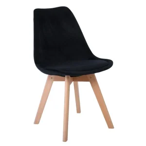 MARTIN Καρέκλα Οξιά Φυσικό, Ύφασμα Velure Μαύρο, Μονταρισμένη Ταπετσαρία