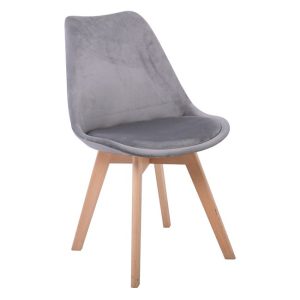 MARTIN Καρέκλα Οξιά Φυσικό, Ύφασμα Velure Σκούρο Γκρι, Μονταρισμένη Ταπετσαρία