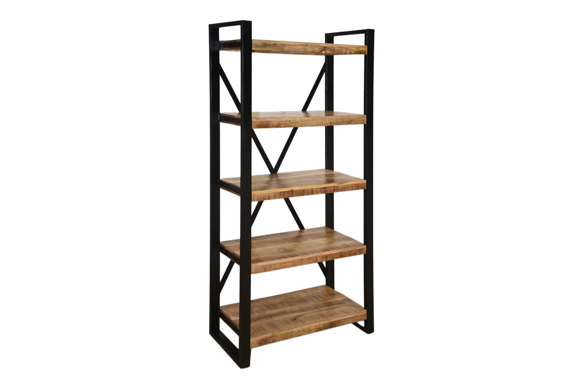 Βιβλιοθήκη Miles pakoworld mango ξύλο σε φυσική-μαύρη απόχρωση 80x40x180εκ