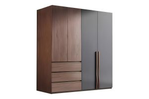Περιλαμβάνει τέσσερις πόρτες και τρία μεγάλα συρτάρια για την αποθήκευση ρούχων και αξεσουάρ.