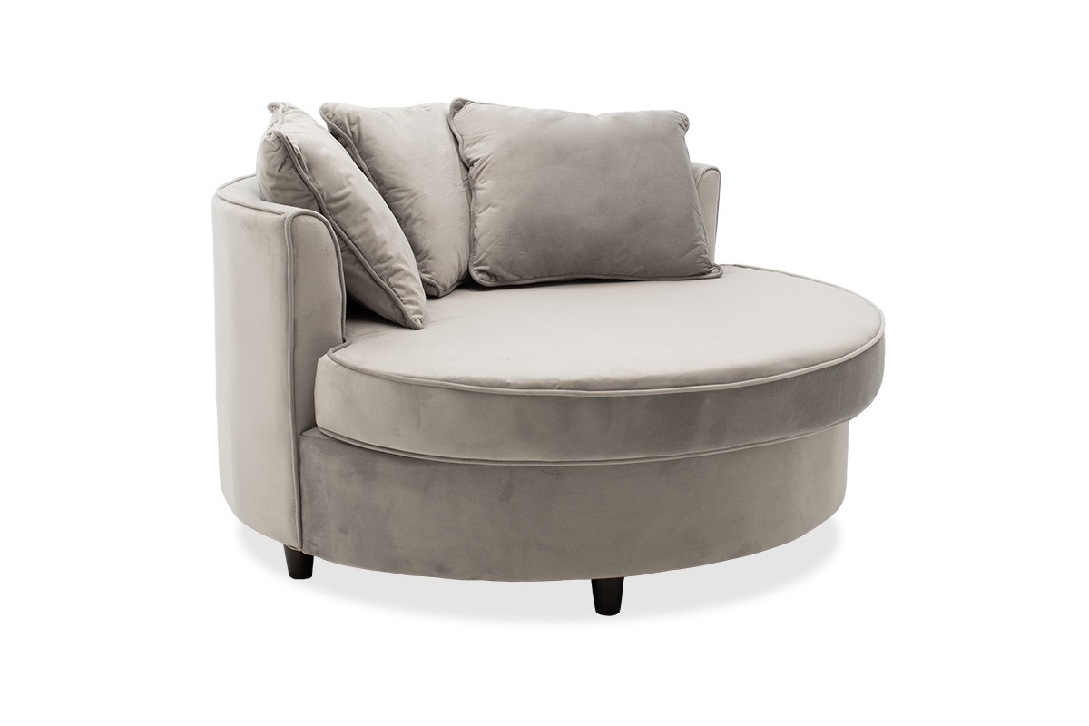 Βάλτε μια έξτρα νότα πολυτέλειας στη διακόσμηση του χώρου σας με ένα πρωτοποριακό σχέδιο σε μία μοντέρνα απόχρωση. Πολυθρόνα – καναπές Ophelia με επένδυση βελούδου στην απόχρωση του γκρι και με έξτρα μαξιλάρια για μεγαλύτερη άνεση.