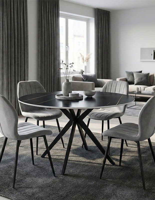 Τραπεζαρία με Καρέκλες Jelour Γκρι και Τραπέζι Orbital Μαύρο Φ120×76 Σετ 5τεμ