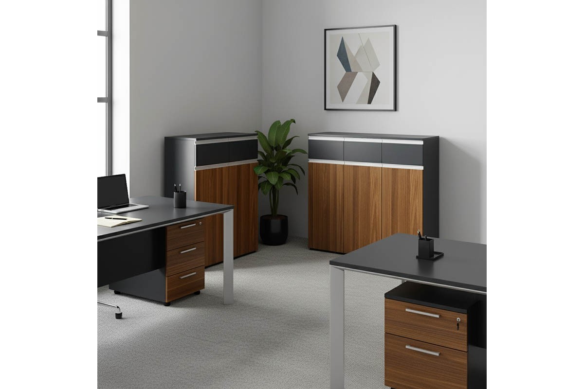 Ντουλάπια γραφείου επαγγελματικά Oscar pakoworld καρυδί-ανθρακί 200x40x120εκ