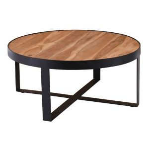 OVEN-W Τραπεζάκι Σαλονιού Καθιστικού, Μέταλλο Βαφή Μαύρο, Ξύλο Ακακία Φυσικό