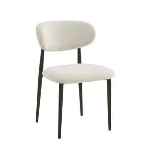 POINT Καρέκλα Τραπεζαρίας Μέταλλο Βαφή Μαύρο, Teddy Ύφασμα Άσπρο