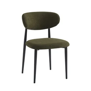 POINT Καρέκλα Τραπεζαρίας Μέταλλο Βαφή Μαύρο, Teddy Ύφασμα Olive Green